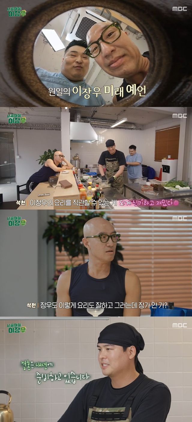 홍석천은 요리하는 이장우를 지켜보며 "이장우 요리를 직관하는 게 신기하고 재밌다. 장우는 이렇게 요리도 잘하는데 장가 안 가냐"고 물었다.