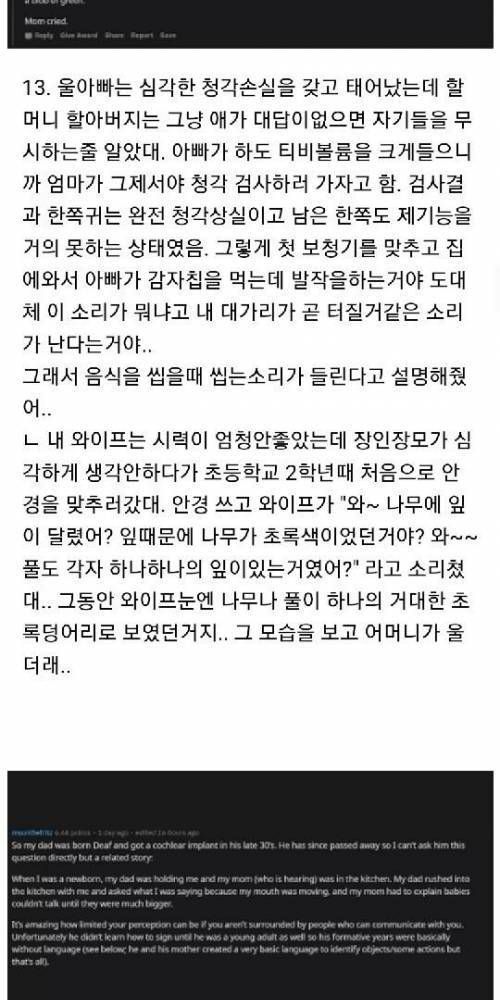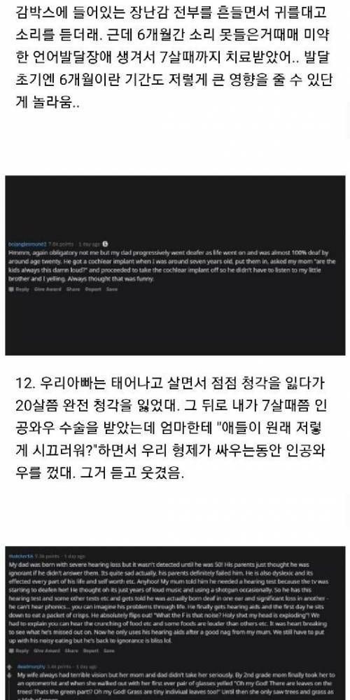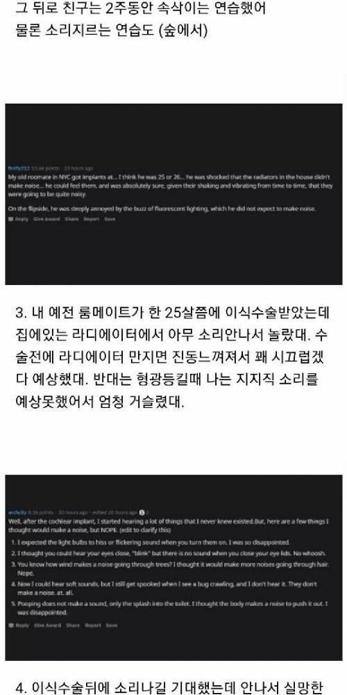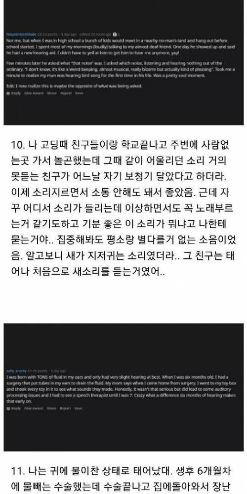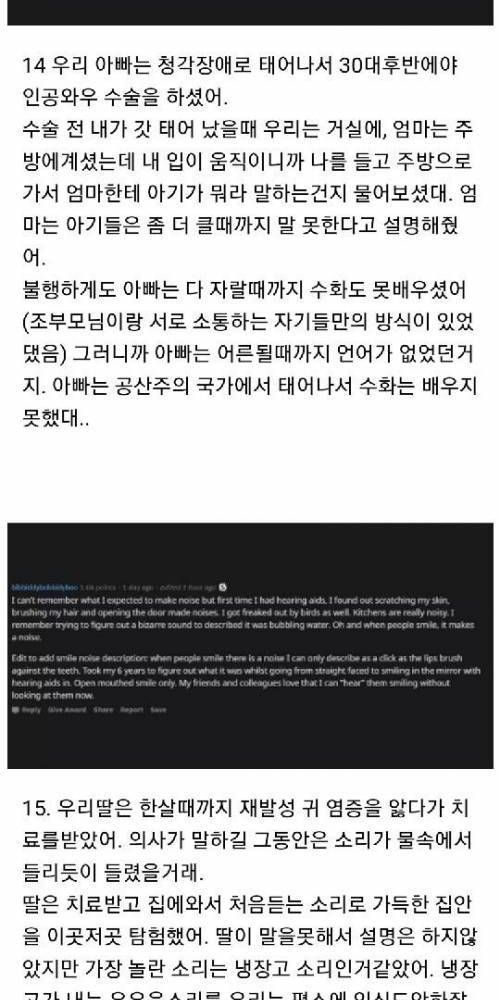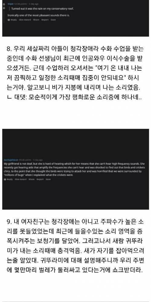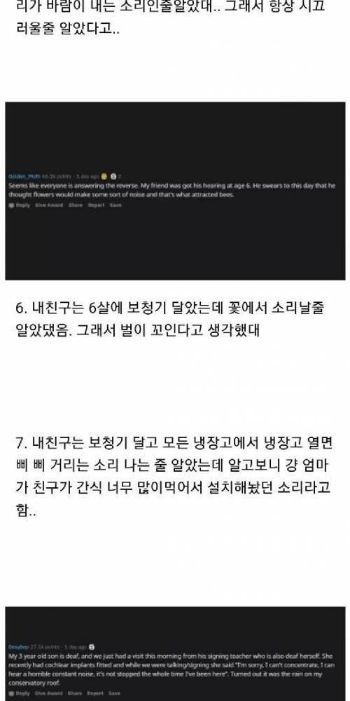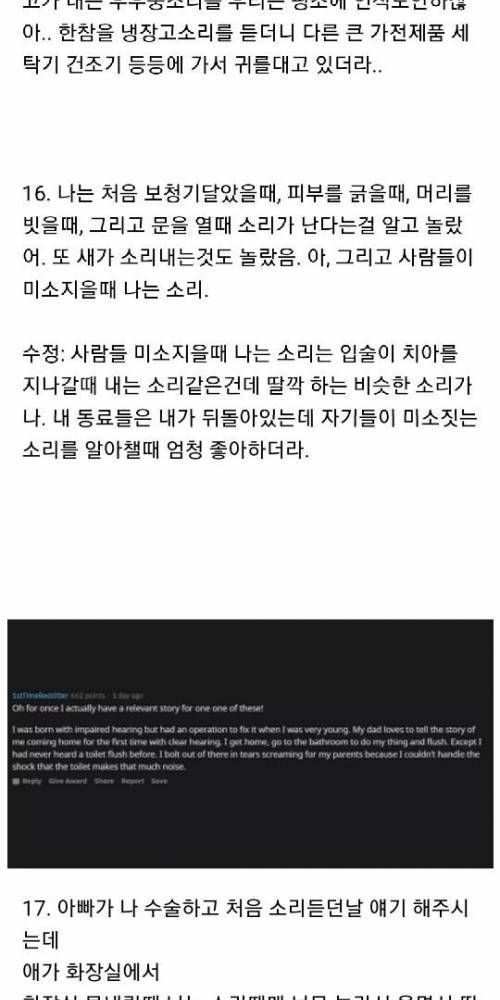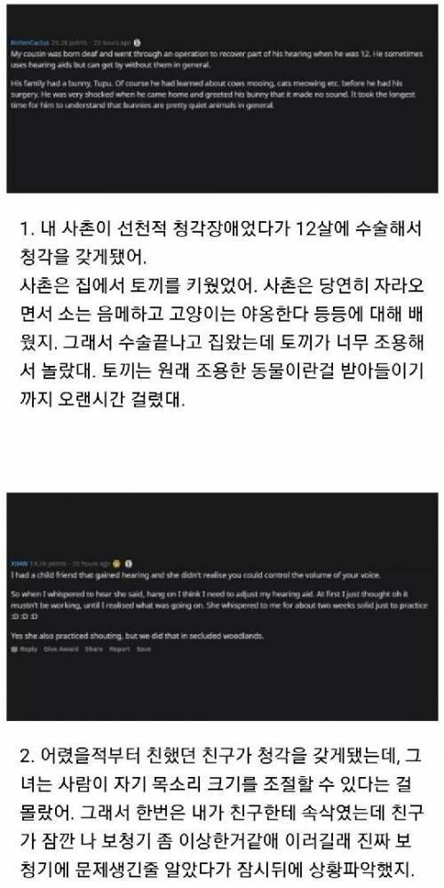 청각장애인들이 소리를 들었을때 일화.