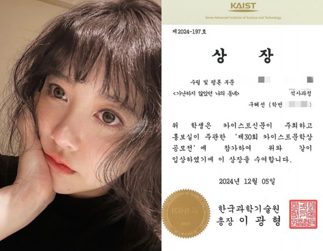 배우 구혜선이 재학 중인 카이스트에서 문학상을 받았다.