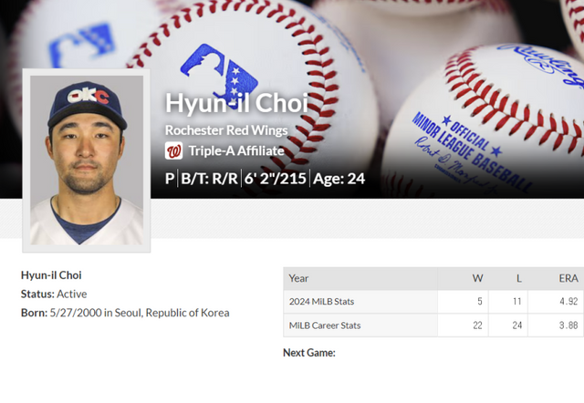 최현일은 12일(한국시간) 미국 텍사스주 댈러스에서 열린 룰5 드래프트에서 워싱턴 구단의 선택을 받았다. 이로써 미국 무대 진출 7번째 시즌을 맞는 2025년에는 워싱턴 구단에서 빅리그 데뷔를 도전하게 됐다.