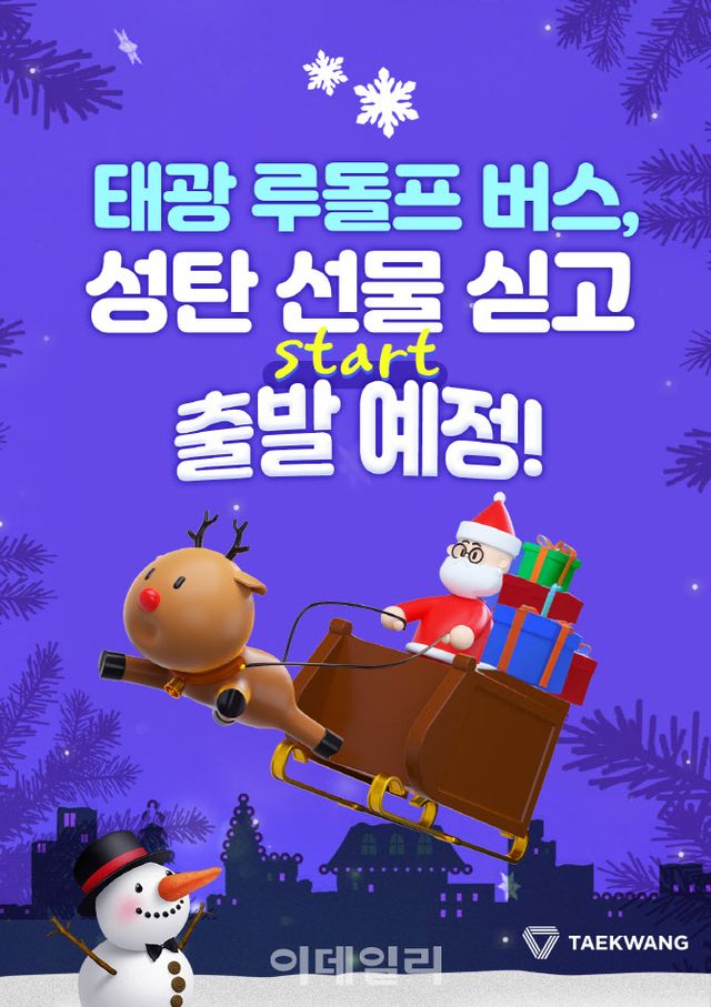 태광그룹 관계자는 “그룹홈 청소년들이 ‘태광 루돌프버스’와 함께 즐겁고 따뜻한 겨울을 보내길 바란다”며 “앞으로도 태광그룹은 기업의 사회적 책임을 다하는 기업으로서 다양한 사회공헌활동을 펼쳐나갈 것”이라고 말했다.