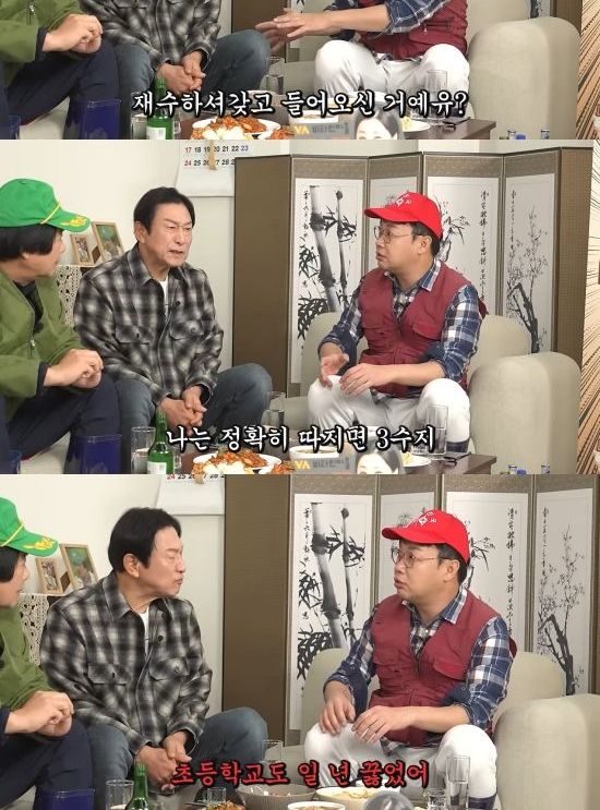 재수를 해서 대학에 들어간 거냐는 말에는 "나는 정확히 따지면 3수다. 초등학교도 1년 꿇었으니까"라며 "우리 어릴 때만 해도 홍역으로 많이 죽었다. 그런데 나도 1학년 때 한 달만 다니고 건강이 안 좋아서 학교를 안 다녔다. 그래서 최근에 어머니께 홍역 때문에 1년을 꿇은 거냐고 여쭤봤더니 홍역은 잘 넘겼다더라. 왜 쉬었는지는 모르겠다"고 설명했다.