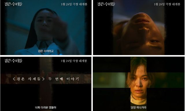 함께 공개된 런칭 예고편은 “12형상이라고 들어보셨습니까”라는 ‘유니아’ 수녀의 대사와 함께 시작부터 몰입감을 높이는 음악으로 긴장감을 고조시킨다. 이어 두 수녀 ‘유니아’와 ‘미카엘라’가 한국에 다시 나타난 12형상에 맞설 것을 예고하며 궁금증을 한층 끌어올리는 가운데, “너희 더러운 영들아 당장 떠나거라” 라는 ‘유니아’의 강렬한 대사와 결연한 표정은 강한 개성을 지닌 캐릭터를 예고하며 장르적 매력을 한층 더 끌어올린다. 여기에 독보적인 존재감과 섬세한 표현력으로 ‘유니아’ 수녀를 완성한 송혜교와 혼란스러운 내면을 지닌 ‘미카엘라’ 수녀를 디테일하게 그려낸 전여빈이 특별한 호흡을 완성할 것으로 이목을 집중시킨다. 이처럼 구마가 금지된 수녀들이 의식에 나선다는 차별화된 설정으로 기대를 높이는 ‘검은 수녀들’은 새로운 캐릭터와 예측할 수 없는 전개로 새해 극장가를 매료시킬 예정이다.