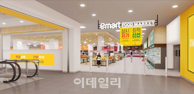이마트는 오는 13일 대구시 수성구에 ‘이마트 푸드마켓 수성점’을 연다고 12일 밝혔다. 매장 전체 영업면적은 3966㎡(1200평)이다. 이 중 테넌트(tenant, 독립 임대매장)와 행사장을 제외한 직영 면적의 86%인 2829㎡(856평)을 그로서리 상품으로만 채웠다. 특히 상품 가격을 기존 할인점보다 20~50% 저렴하게 운영하는 ‘상시 저가’를 핵심 경쟁력으로 내세웠다.