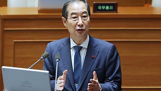 한덕수 국무총리가 11일 오후 국회 본회의에서 진행된 '윤석열 대통령 위헌적 비상계엄 선포 내란행위 관련 긴급현안질문'에서 답변하고 있다. / 연합뉴스