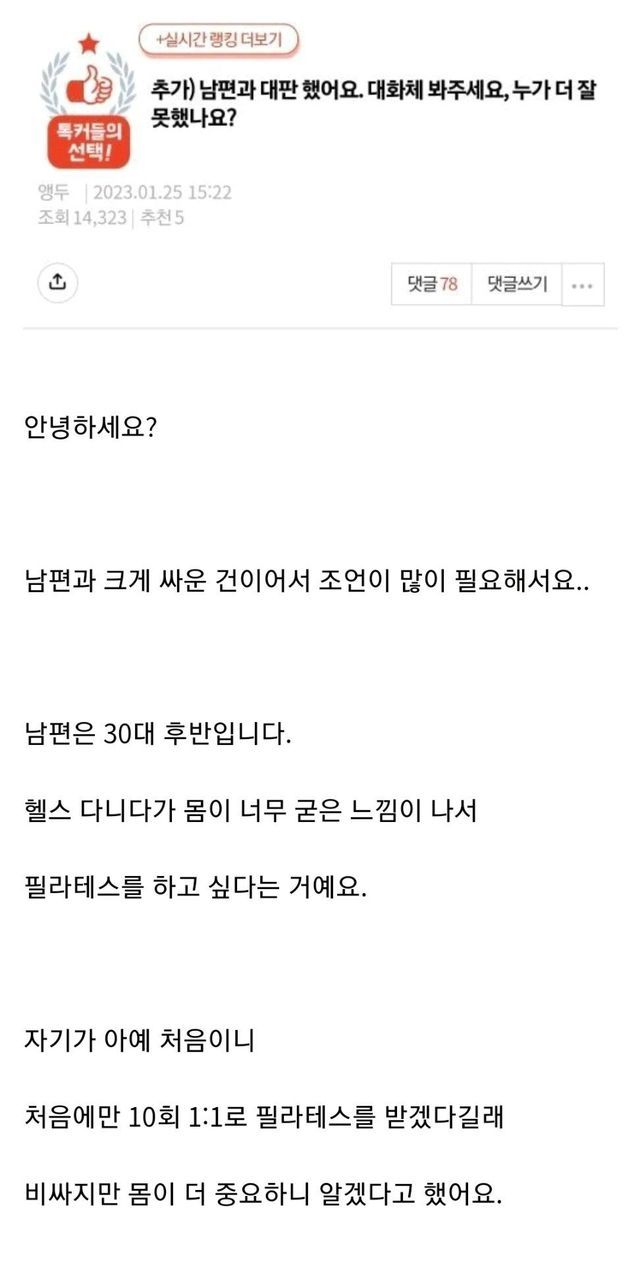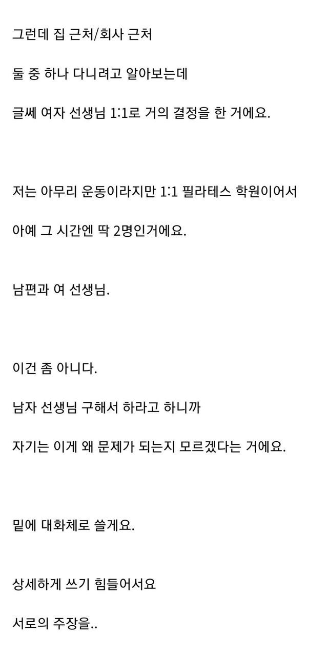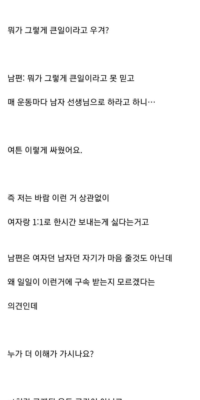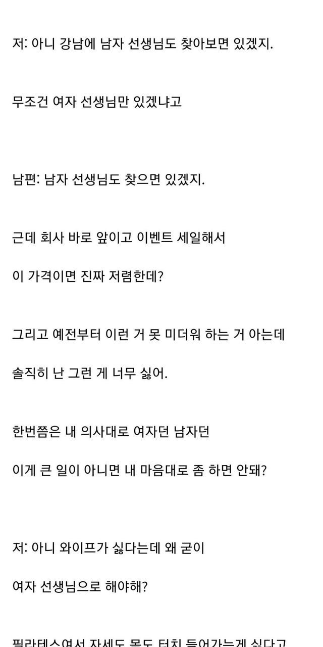 여자 강사랑 일대일 필라테스 하겠다는 남편과 대판 싸웠어요.