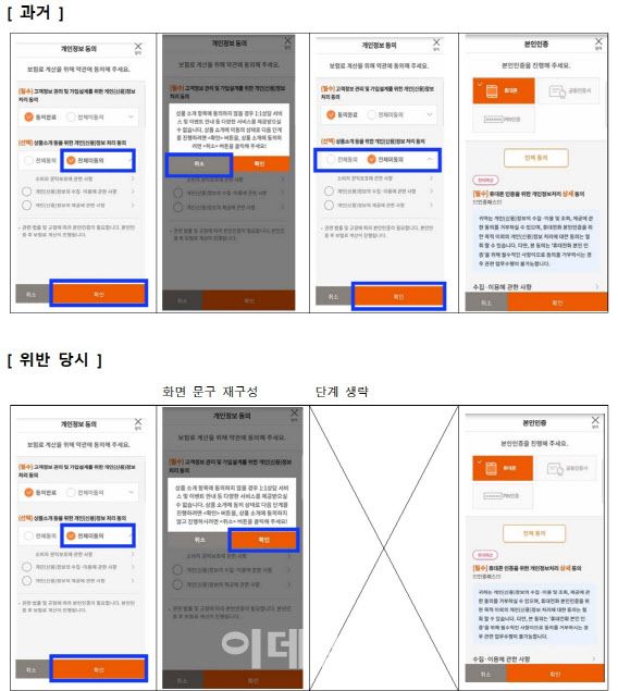 특히 이러한 재유도 창으로 개인정보 수집·이용과 제공에 동의를 받으면서도, 재유도 창에는 ‘개인정보 처리’ 표현이나 동의에 필요한 법정 고지사항이 없어 이용자는 마케팅 활용을 위한 개인정보 처리라는 사실을 알 수 없었다.