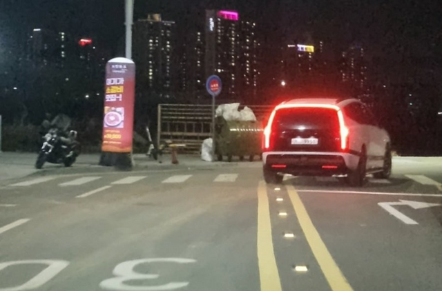 현대차 3열 전기 SUV 아이오닉 9이 야간에 국내 도로를 주행하는 모습이 포착됐다. 화려하게 불이 들어온 초대형 아치 테일램프가 논란을 일으키고 있다.
