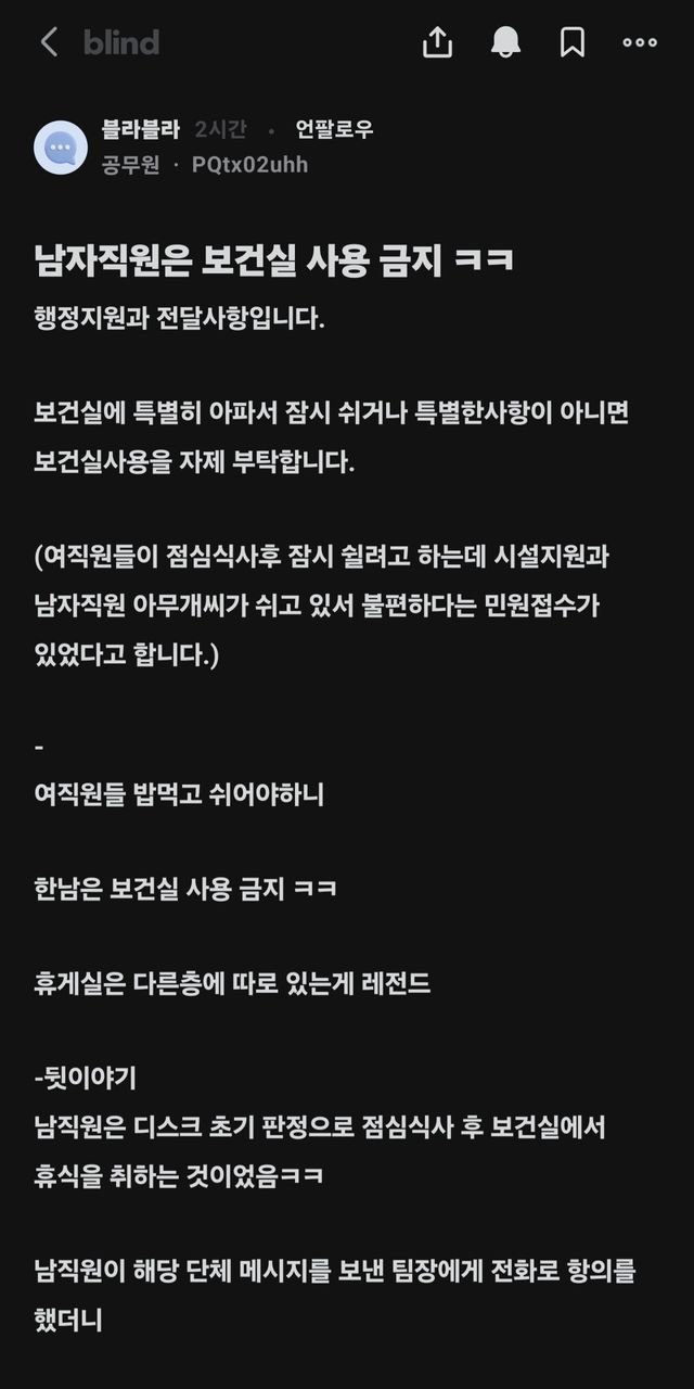 IMG_6929.jpeg 남자 공무원 보건실 사용금지 더쿠 반응 ㄷㄷㄷ