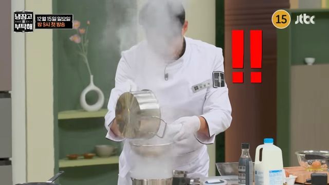 두 사람이 한창 요리에 열중하던 때, 요리 중인 최현석의 냄비에서 연기가 막 피어오르는 긴급 상황이 발생했다.