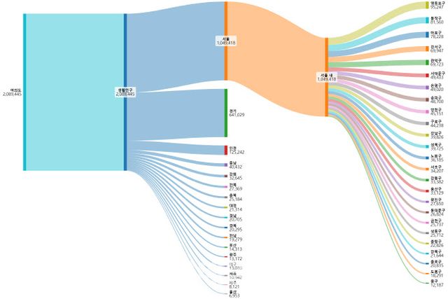 서울시민의 경우 104만 9418명 중 영등포구 거주자가 9만 5247명으로 가장 많이 집계됐고 동작구(8만 1560명), 마포구(7만 8228명), 강서구(6만 9947) 거주자 순이었다.
