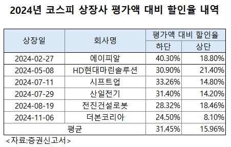 실제 올 최대어로 5월 상장한 HD현대마린솔루션은 조선기자재사로 폭발적 성장은 기대하기 힘든 업종임에도 평가밸류에 PER을 무려 31배 적용해 논란이 있었다. 올 7월 상장한 게임사 시프트업도 평가밸류 PER이 무려 39.25배로 업계 1위인 크래프톤(당시 약 20배)의 두 배 수준을 제시해 고평가 지적을 받았다. 시장이 냉각된 최근까지도 대어는 고밸류를 주장해 왔다. 엠앤씨솔루션(MNC솔루션)은 연간 순이익이 300억원에도 못미치지만 공모밸류는 최대 8800억원으로 제시했었다.