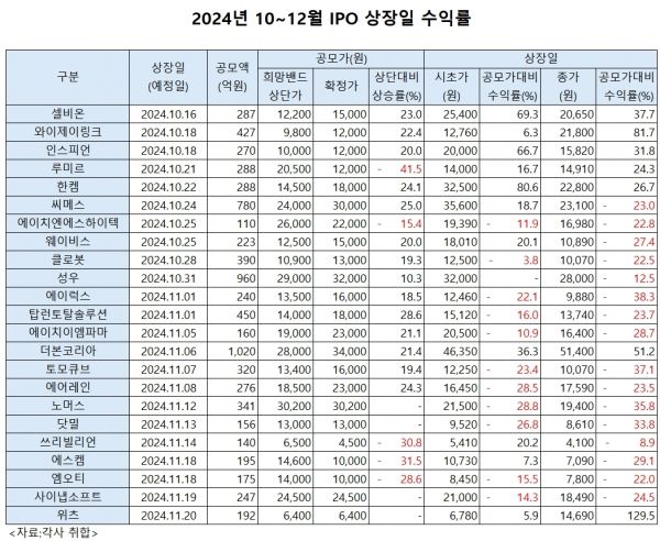 ◇ 10월 말 이후 16개 공모주 연속 손실…LG CNS가 구원투수