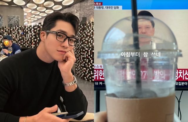 배우 서하준 또한 "아침부터 참 쓰네"라는 글과 함께 사진을 게재했는데, 해당 사진에는 윤 대통령의 대국민 담화 뉴스 특보 화면이 담겼다.