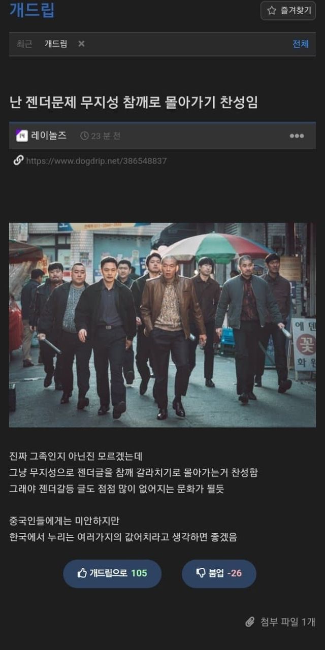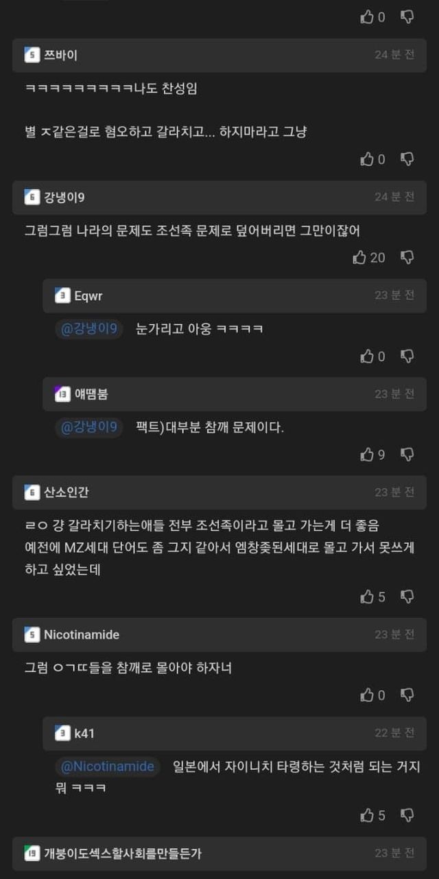 조선족이 실제로 갈라치기 선동한거도 있으니 남녀갈등 기미 보이면 조선족이라고 찍는것도 나쁠거 없어보임