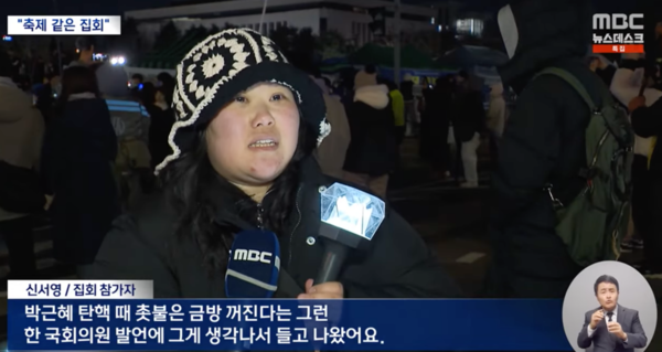 과거 촛불집회(2016~2017년)에서는 20대가 전체 참가자의 19.4%에 그쳤고, 성별로는 남성이 56.9%로 우위를 차지했으나, 이번 집회에서는 여성의 참여가 더 두드러졌다.