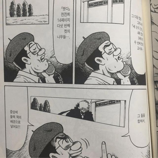 전화로 예전에 그려놓은 컷들 위치 말해주면서 복붙 지시함