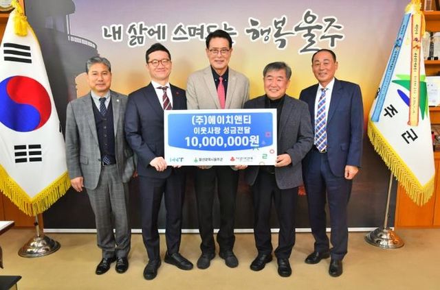 | ▲ 울주군 ㈜에이치앤티, 울주군 성금 1천만원 전달 |