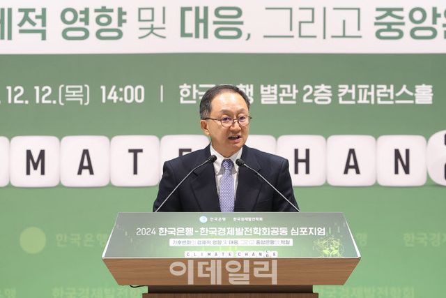 장용성 금융통화위원회 위원은 12일 서울 중구 한국은행에서 열린 ‘2024 한국은행-한국경제발전학회 공동 심포지엄’에서 “기후변화는이제 실물 경제와 금융 시스템에 중대한 영향을 미치는 핵심 변수로 자리잡았다”며 “기업, 가계, 금융기관 등 모든 경제 주체는 이 도전에 대비해야 한다”고 강조했다.