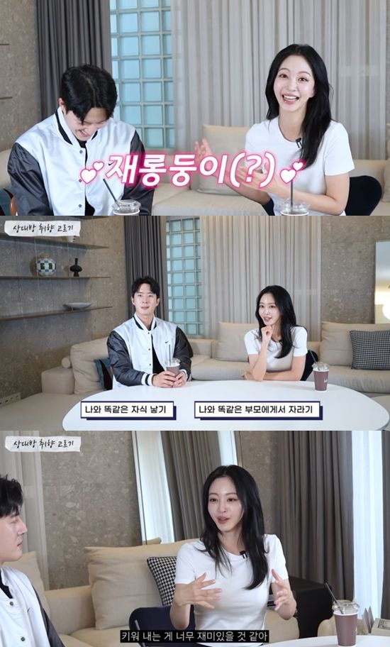 이어 두 사람은 밸런스 게임을 진행했다. '찐만두vs군만두', '딱복vs물복' 등 간단한 취향 밸런스를 하던 한예슬은 모든 답이 남편과 똑같자 "우리가 취향이 잘 통한다. 더 센 질문 들어와달라"라며 제작진을 도발해 류성재를 당황하게 만들었다.