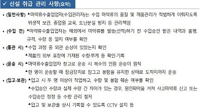 이번 개정은 수입 과정에서 의료용 마약류가 도난, 파손되지 않고 철저하게 취급 관리될 수 있도록 세부 사항을 상세하게 안내하기 위한 목적이다.