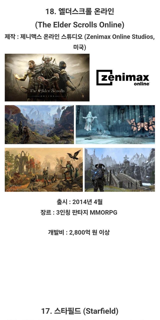 전세계 대규모 AAA 게임 개발비 순위 TOP 20.jpg