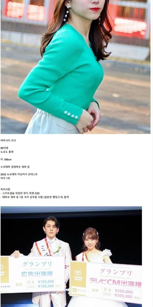 도쿄대 미남미녀 콘테스트 1위.