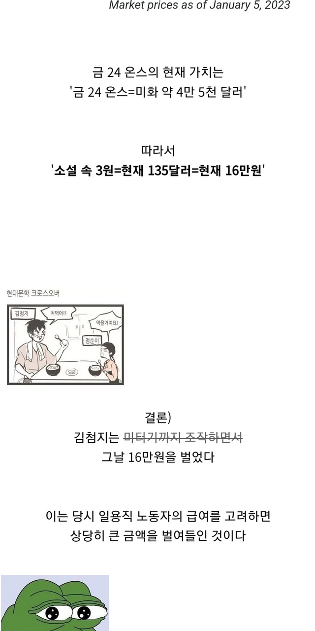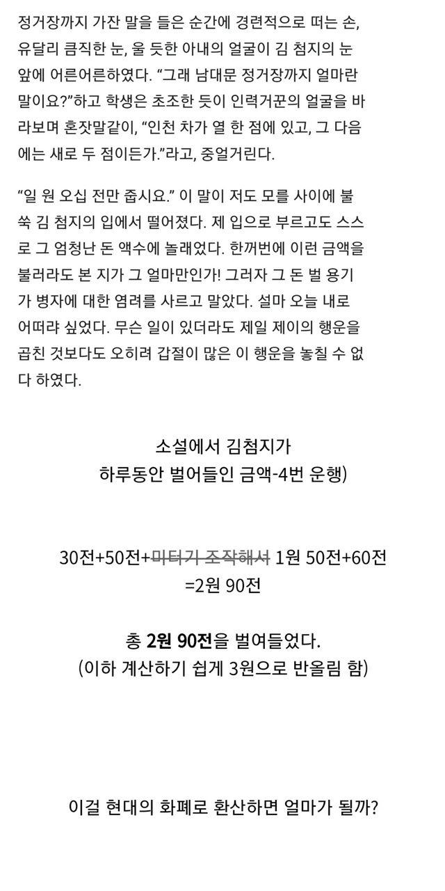 ‘운수 좋은 날’ 김첨지가 벌어들인 금액.