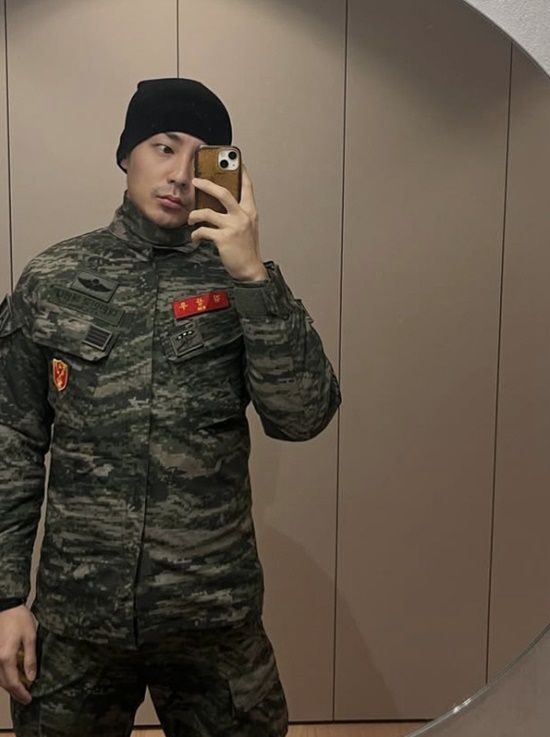 공개된 사진에는 해병대 군복을 입고 셀카를 남긴 로이킴의 모습이 담겨 있다.
