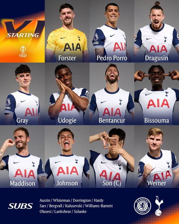 13일 오전 5시(한국시간) 스코틀랜드 글래스고의 아이브록스 스타디움에서 2024-2025 유럽축구연맹 유로파리그 리그 페이즈 6차전을 치른 토트넘이 레인저스와 1-1 무승부를 거뒀다. 토트넘과 레인저스는 승점 1점을 나눠가지며 순위 변동을 이뤄내지 못했다.