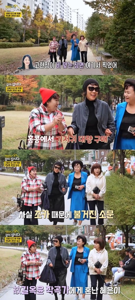 12일 방송된 KBS 2TV '박원숙의 같이 삽시다'에서는 박원숙·혜은이·남궁옥분·원미연이 연남동 경의선 숲길을 산책하는 모습이 그려졌다.