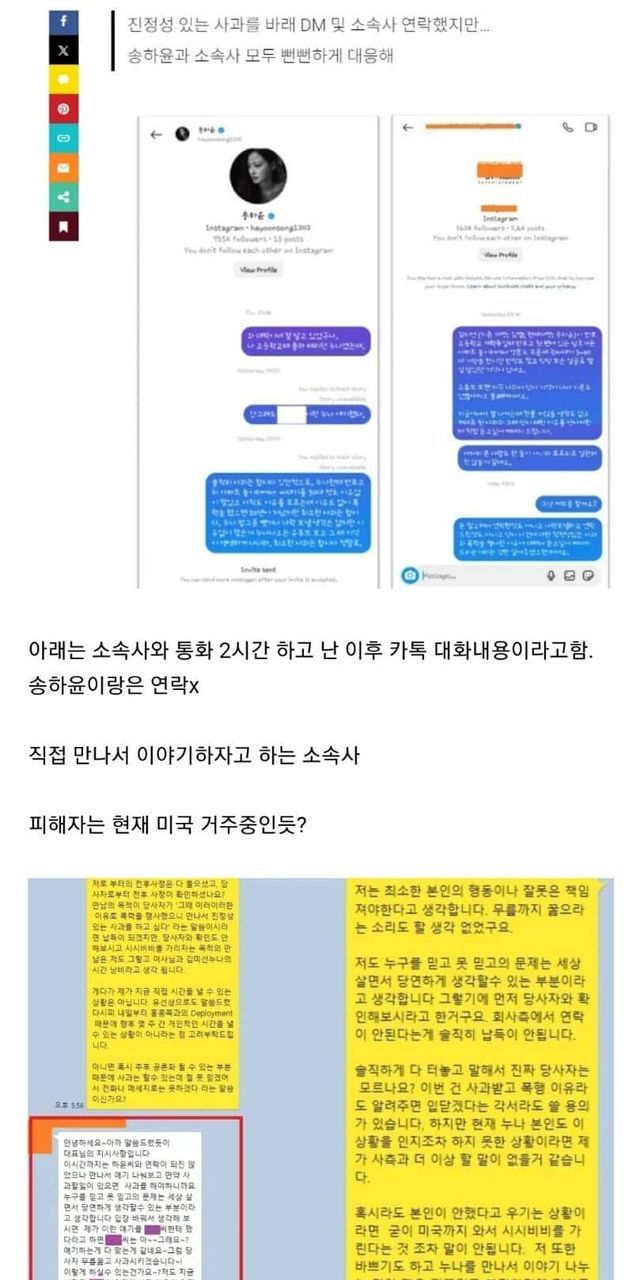 송하윤 학폭 피해자 소속사와 대화내용 공개
