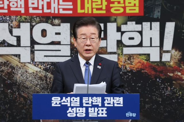이재명 대표는 13일 오전 서울 여의도 국회에서 ‘12월 14일, 새로운 국민 승리의 날로 기록될 것입니다’란 제목의 성명을 발표했다.