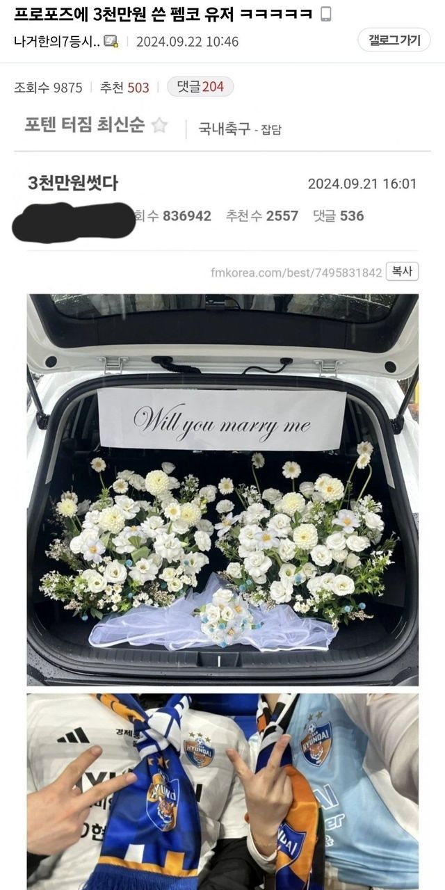 주갤에서 욕먹고 있는 프로포즈 3000만원 펨코 유저