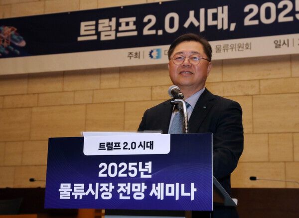 대한상공회의소(회장 최태원)가 12일 상의회관에서 대한상의 물류위원회(위원장 신영수 CJ대한통운 대표) 주최로 트럼프 2.0시대, 2025년 물류시장 전망’세미나를 개최했다고 밝혔다. 번 행사는 트럼프 집권 2기 정책변화에 따른 교역환경, 글로벌 공급망 이슈 등을 점검하고, 우리 기업들의 대응방안을 모색하기 위한 자리로 마련됐다. 이날 행사에는 신영수 대한상의 물류위원회 위원장, 박일준 대한상의 상근부회장을 비롯해 강병구 롯데글로벌로지스㈜ 대표이사, 심충식 ㈜선광 부회장, 이상근 삼영물류㈜ 대표이사 등 주요 물류기업의 대표들과 함께 150여명의 물류종사자들이 참석했다.