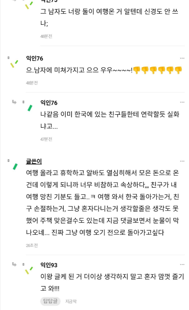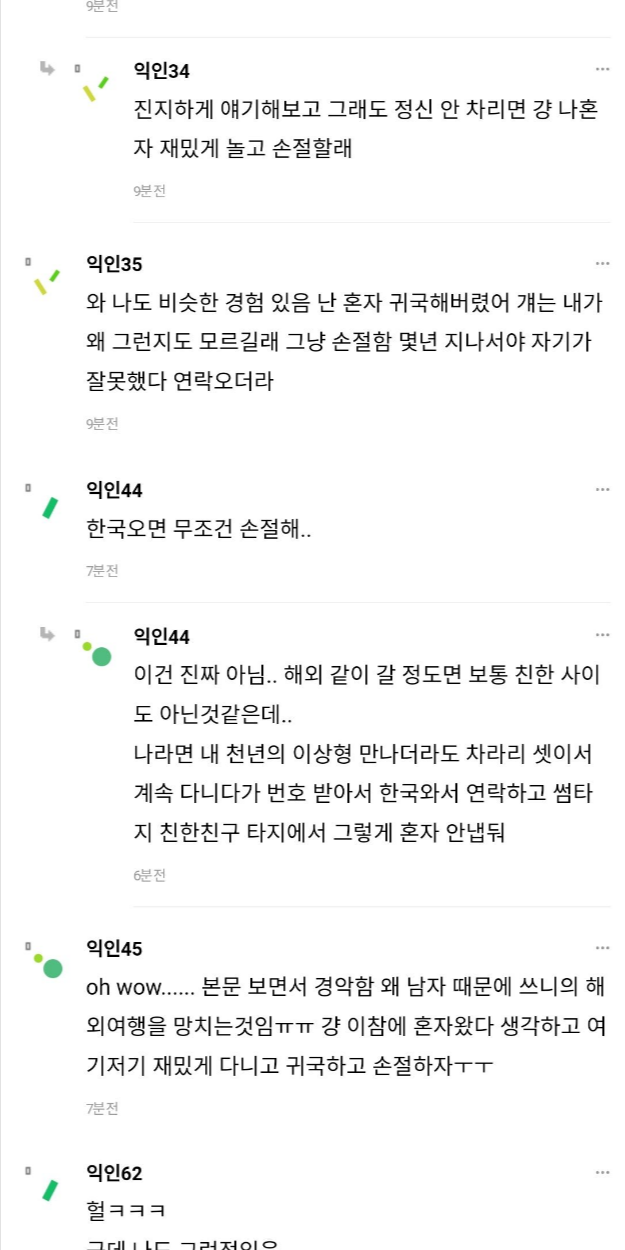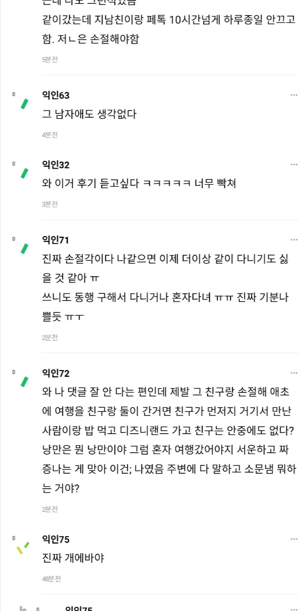 친구랑 같이 유럽 왔는데 친구가 다른 남자랑 다녀.