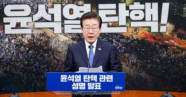 이 대표는 이날 오전 국회에서 '윤석열 탄핵 관련 성명'을 발표하며 "매일 밤 여의도를 가득 메운 촛불 행렬을 보며 생각한다. 지금 5000만 국민은 무도하고 광기 어린 내란 세력에 맞서 평범한 일상을 되찾기 위해 장엄한 싸움을 시작했다"라면서 "위대한 국민 앞에서 정치의 본령과 국가의 책무를 다시 생각하게 된다"고 말했다.
