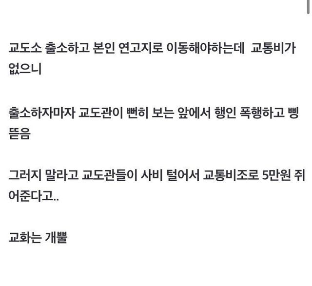 교도소 출소시 5만원씩 쥐어 주는 이유 ㄷㄷ