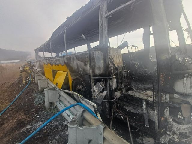 13일 충남소방본부 등에 따르면 전날 오후 2시 27분쯤 충남 논산시 가야곡면 호남고속도로 논산 방향 13.8㎞ 지점에서 고속도로를 달리던 대형 버스에서 불이 났다는 신고가 접수됐다.