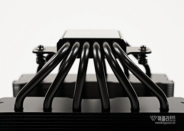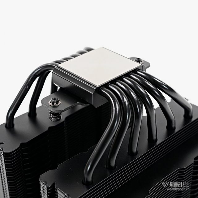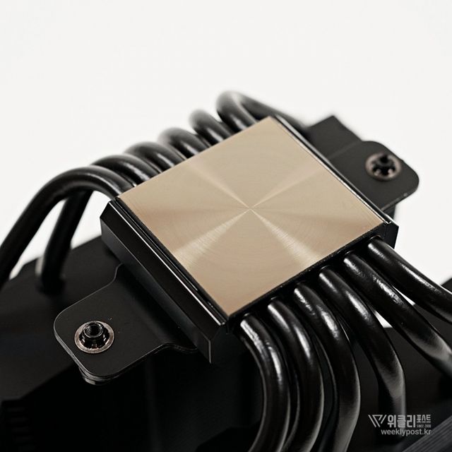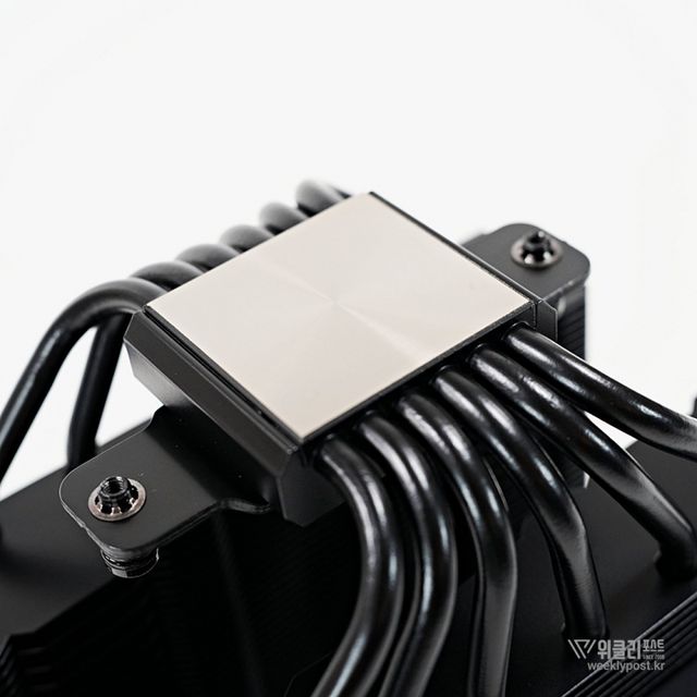 니켈 도금된 6개의 6mm 히트파이프가 사용된다. 묵직하고 위압적인 느낌은 히트파이프에서도 여실히 드러나는데, 이 사이즈의 쿨러에 넣을 수 있는 최대 수량이 아닐까 싶은 느낌이다.