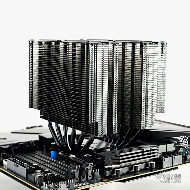 전작보다 더 거대해진 히트싱크가 엄청난 존재감을 과시한다. 공랭쿨러로 실현할 수 있는 최대 크기의 히트싱크에 육박했다는 느낌이 절로 들 만큼 중량감을 키웠다. 쿨링팬 역시 140mm를 적용해 정숙함과 강력한 성능을 모두 확보했다.