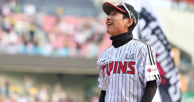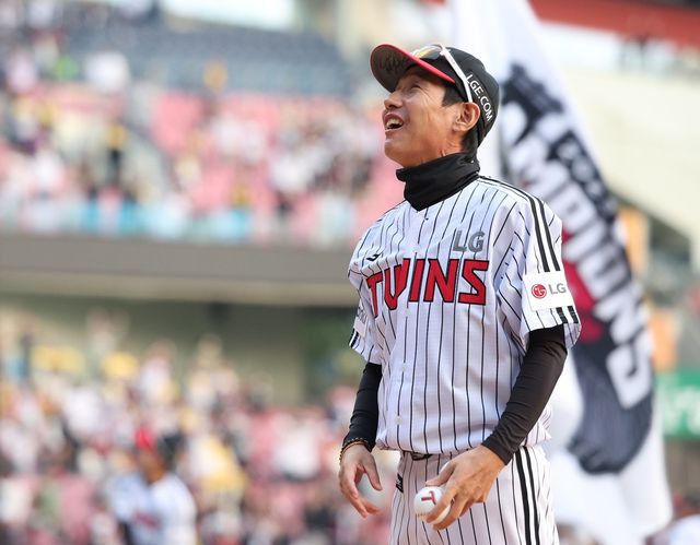 지난해 10월 15일 서울 송파구 잠실야구장에서 열린 프로야구 두산과 LG의 경기를 마친 뒤 열린 LG트윈스 정규시즌 우승 트로피 전달식에서 염경엽 LG 감독이 팬들에게 사인볼을 던지며 환하게 웃고 있다. / 연합뉴스