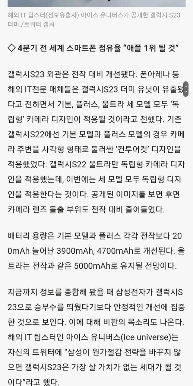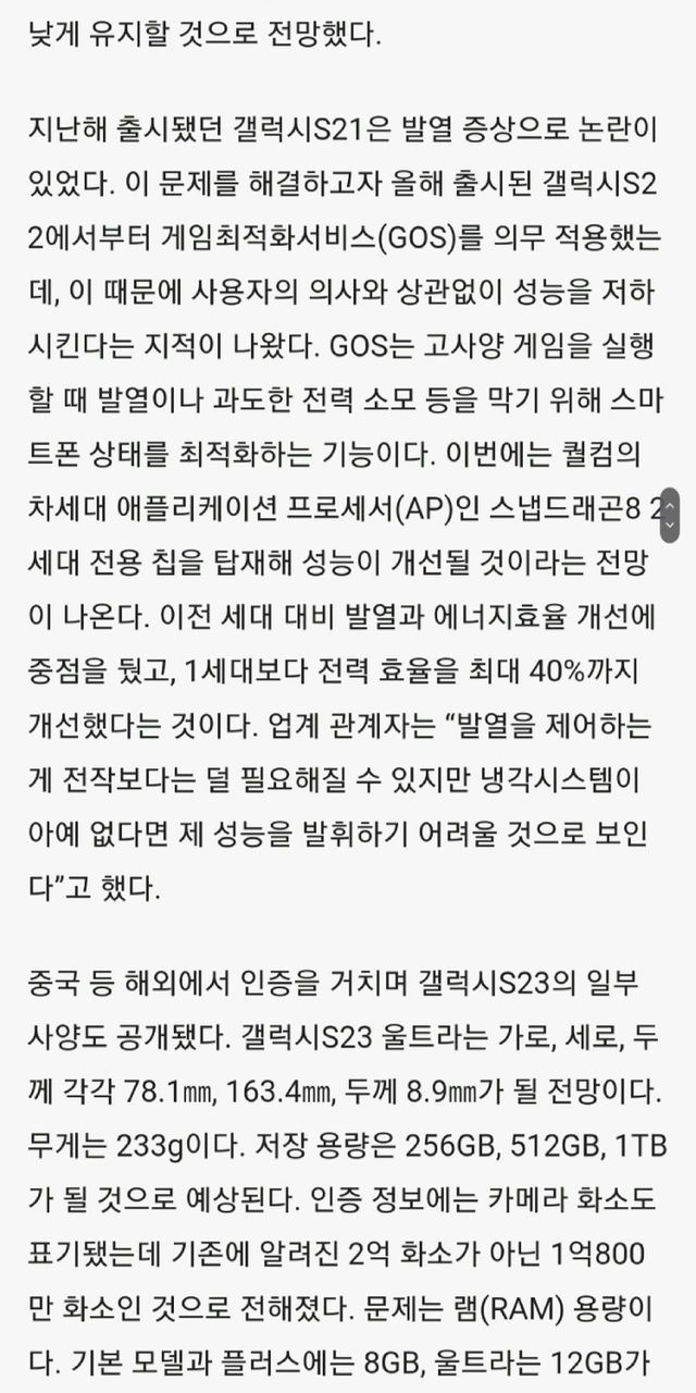 갤럭시 S23 최신 근황.