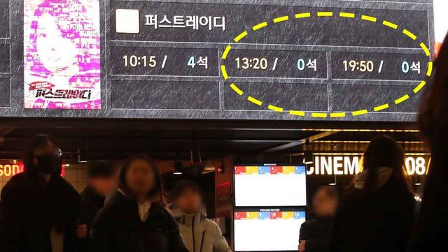 윤석열 대통령의 아내인 김건희 여사를 소재로 한 다큐멘터리 영화 '퍼스트레이디'가 개봉한 12일 오전 서울 시내 한 영화관 전광판에 '퍼스트레이디'의 남은 좌석수가 0으로 표시되고 있다. '퍼스트레이디'는 김건희 여사와 관련한 그간의 여러 논란에 대해 다룬 다큐멘터리 영화다. 특히 윤석열 대통령의 비상계엄 사태 후폭풍 속 탄핵 정국 상황이라, 이 작품의 개봉에도 더욱 관심이 쏠리고 있다. / 뉴스1