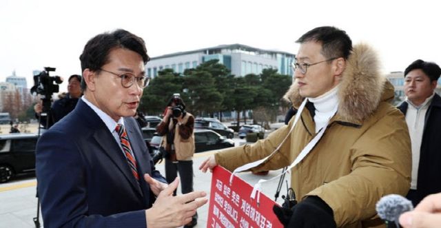 마침 오후에 예정된 본회의에 참석하기 위해 국회에 온 윤 의원은 홀로 시위를 하고 있는 김 의원을 보고 먼저 악수를 건넸다. 이어 윤 의원은 김 의원을 설득하기 위해 박근혜 전 대통령의 탄핵 사태를 언급하며 “박 전 대통령이 탄핵된 다음 체제 탄핵이 됐다. 대한민국의 체제를 탄핵시킨 우를 범한 것”이라고 말했다.