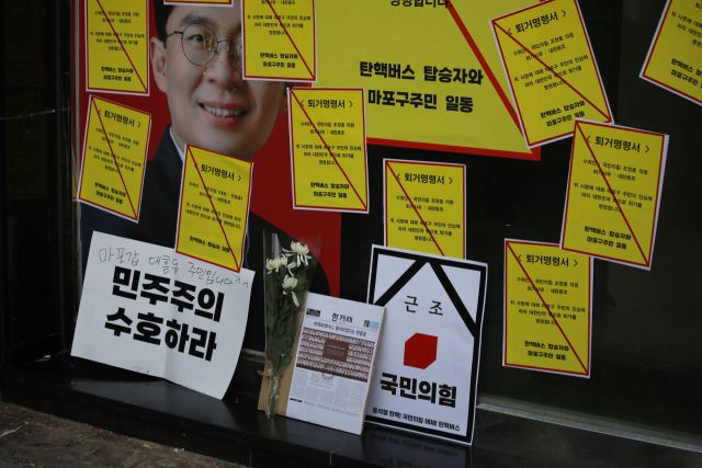 탄핵버스는 '탄핵이 답이다', GD의 '삐딱하게' 등 '탄핵 플피(플레이 리스트)'를 튼 채 신동욱 의원의 지역구인 강남으로 향했다.