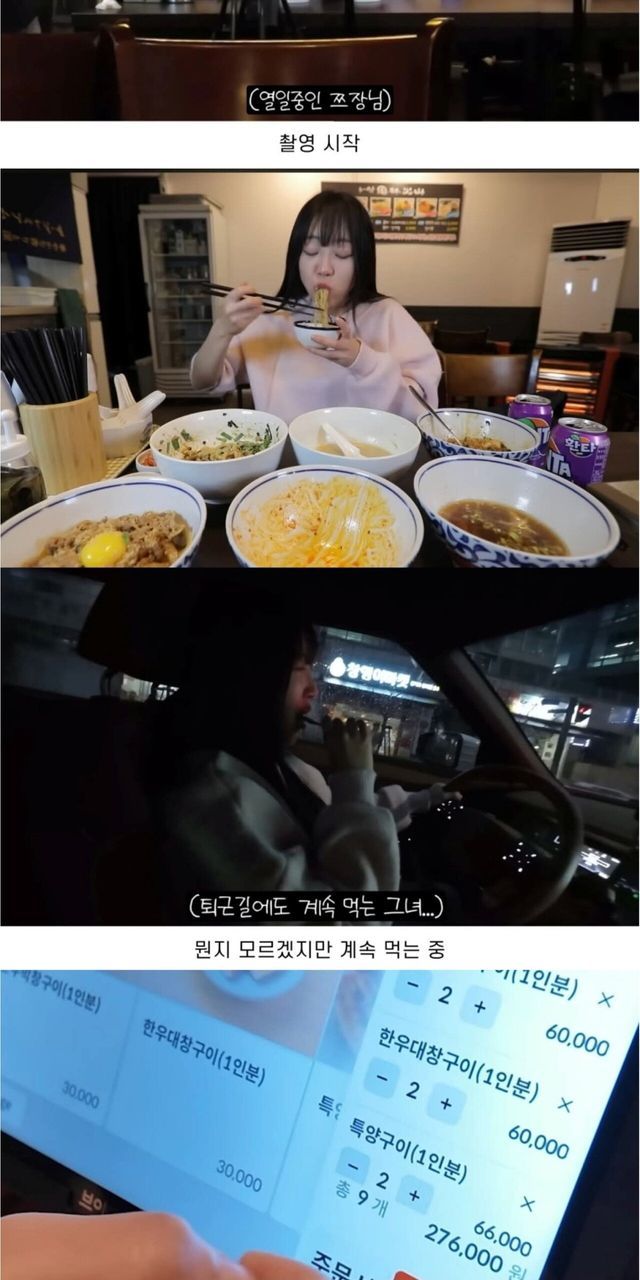 저렇게 먹고 새벽에 또 먹은거였음... 쯔양 센세 ㄷㄷㄷ