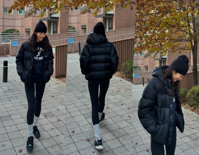 곽지영은 이날 운동에 나서는 만큼, 편안한 차림으로 눈길을 끌었다. 맨투맨 티셔츠와 숏패딩을 걸친 뒤 레깅스와 레그 워머로 패션을 완성했다. 특히 곽지영은 늘씬한 각선미를 뽐내며 모델 출신다운 몸매를 과시했다.