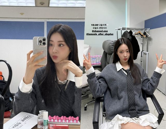 대기실에서 촬영한 사진 속 경리는 스쿨룩 분위기의 상의와 화사한 프릴 스커트를 매치해 남다른 패션 감각을 뽐냈다. 특히 짧은 스커트에 드러난 가녀린 각선미가 눈길을 사로잡는다.