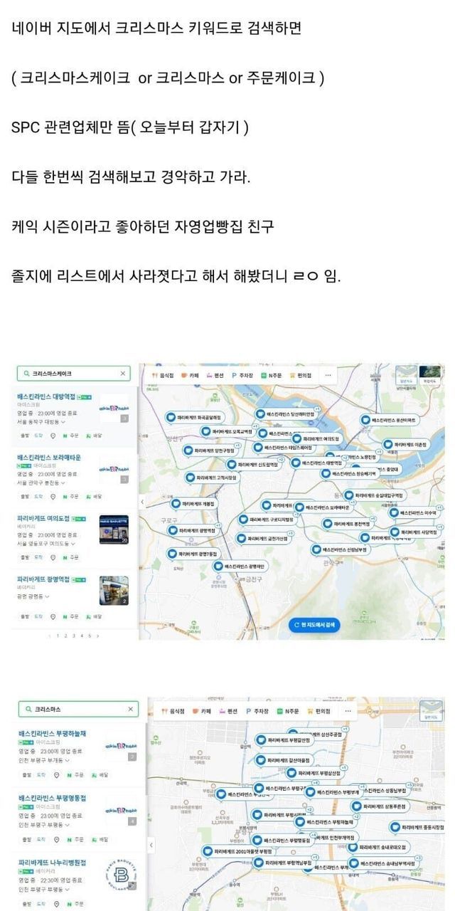 크리스마스 검색하면 파바/베스킨/던킨만 주르륵 나옴